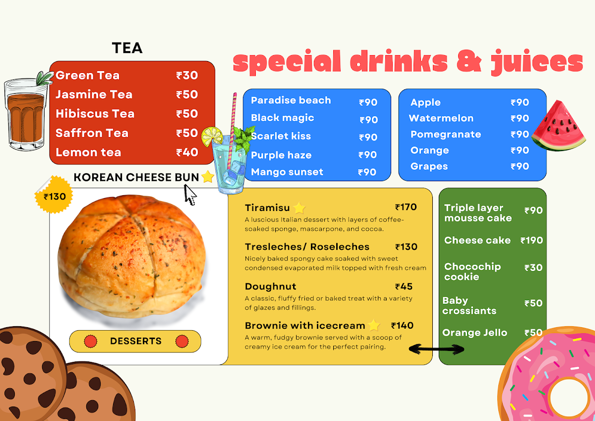The menu is a delectable fusion of flavors, highlighted by their signature pastas like the creamy Alfredo and spicy Arrabiata, each priced at ₹180. Don’t miss the Mac & Cheese at ₹190 for those comfort food cravings. For starters, indulge in the Great Indian Fries or mouthwatering Crispy Veggie Pockets, each at ₹120, ideal for sharing or savoring solo.